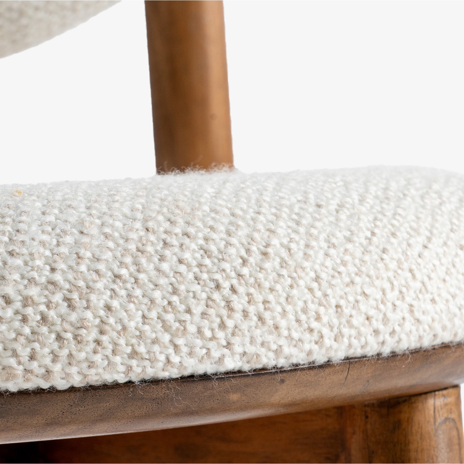 Dining Table: Bottochino Marble and Acacia Wood Chair: Upholstery and Acacia Wood