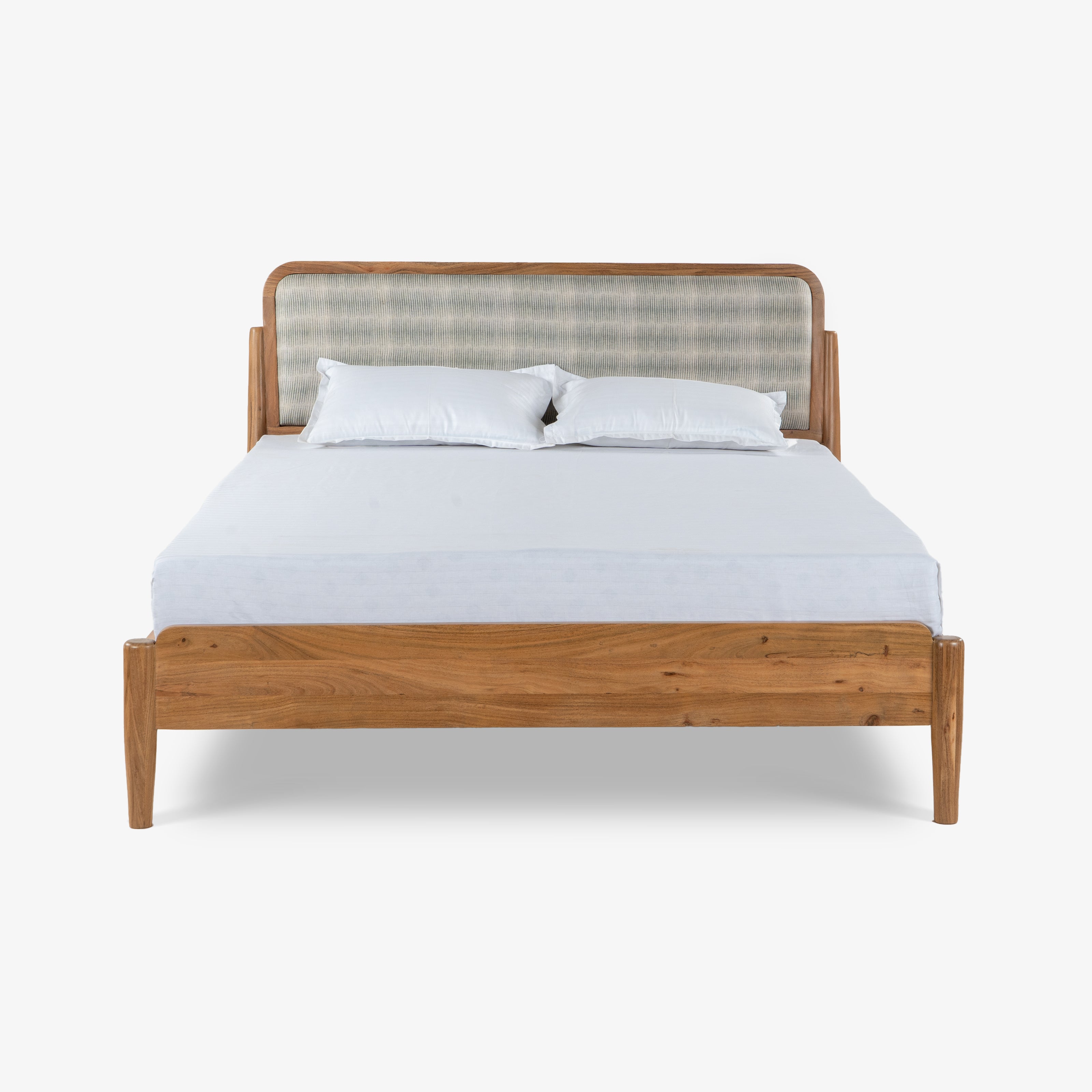 The Kanan Bed takes its name from the Sanskrit word for “forest grove,” reflecting its natural charm and earthy textures. A upholstered headboard pairs effortlessly with the solid wood frame, creating a restful sanctuary that feels grounded in nature.