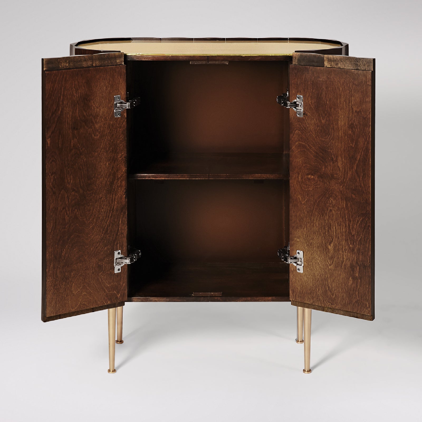 Finish: Walnut stain on Wood and Brass finish on Steel