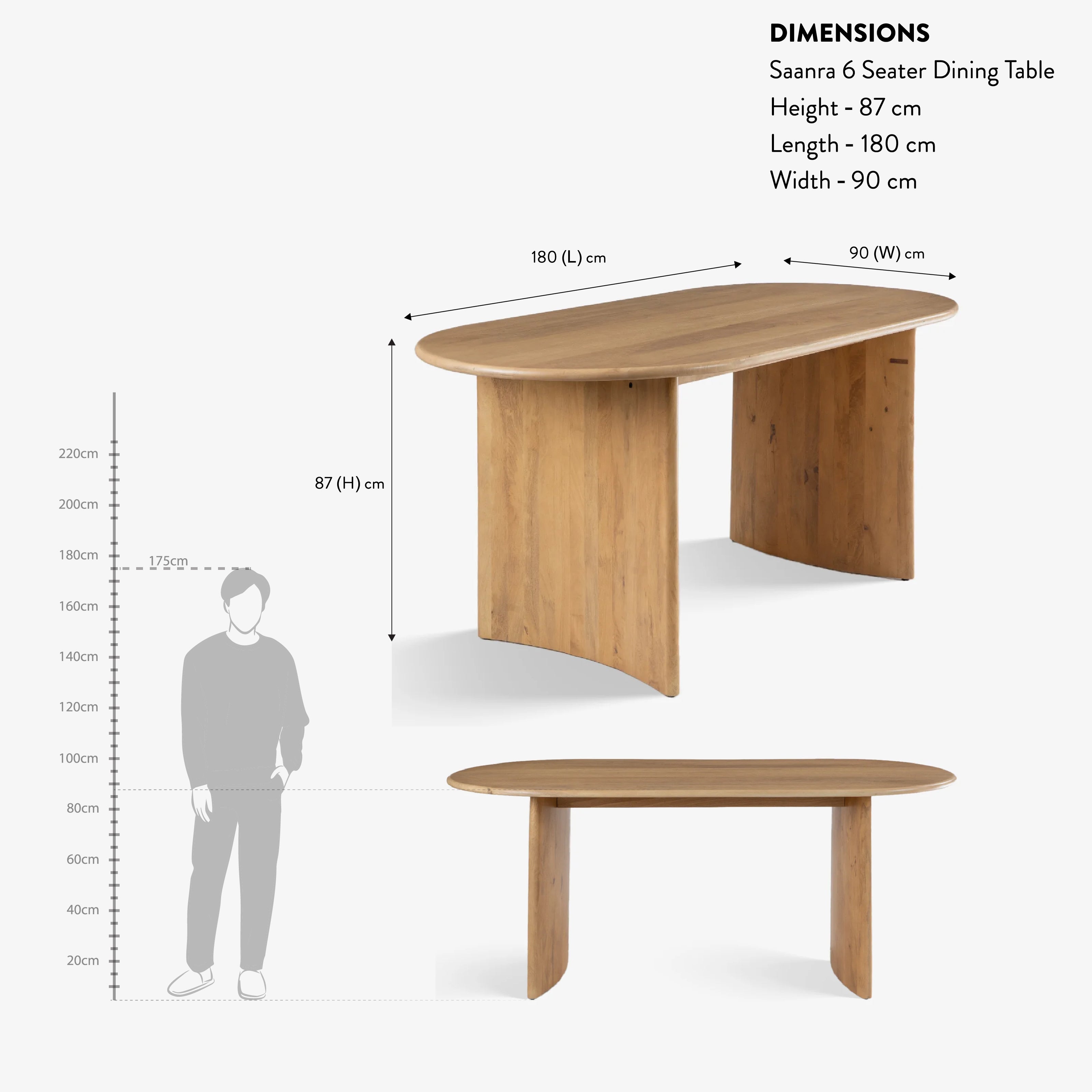 Dining Table: 180 L × 90 W × 87 H cm Chair: 50 L × 50 W × 87 H cm
