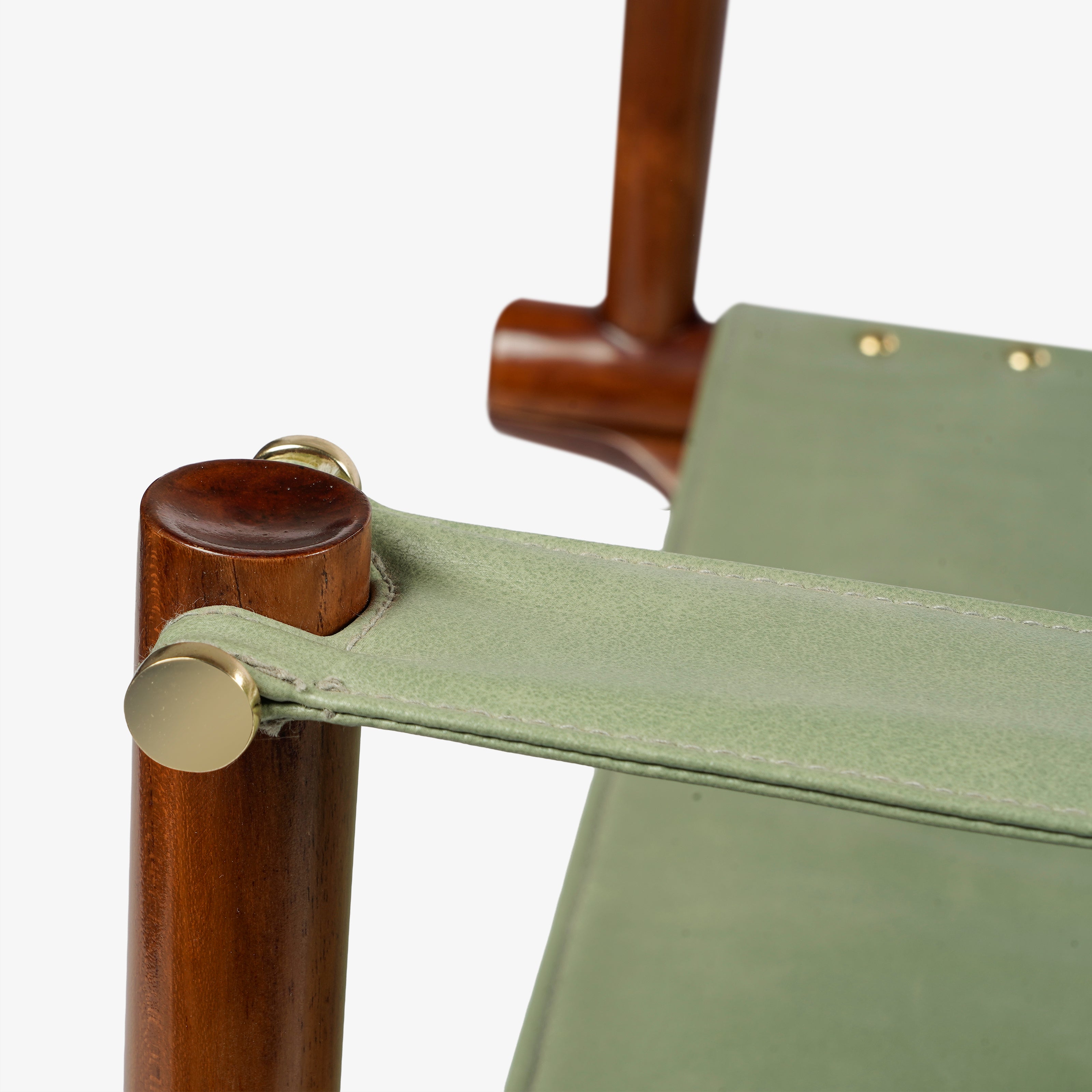 Finish: PU high gloss teak finish, Gold powdercoating & Green fabric