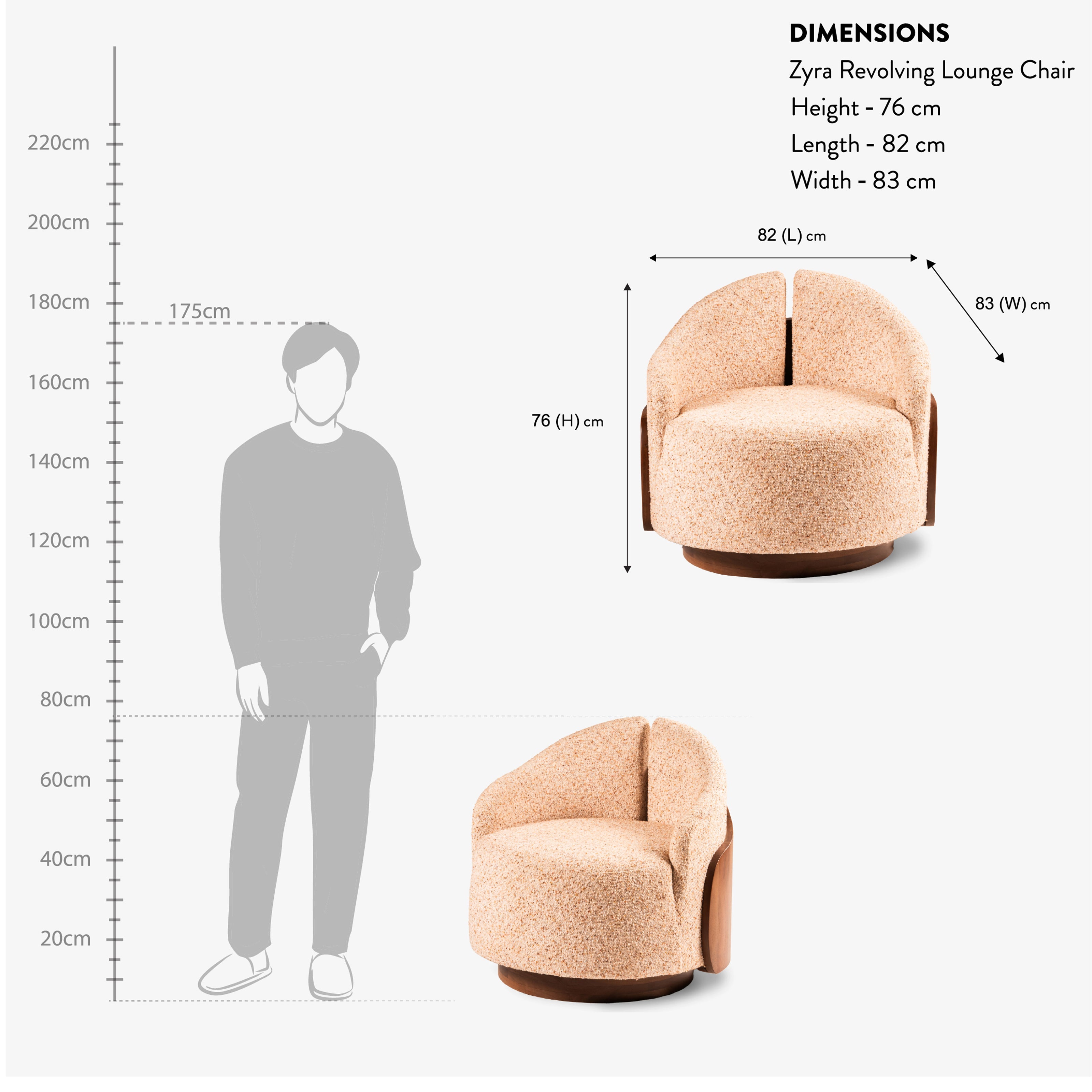 The Zyra Chair introduces playful dynamism to lounging with its revolving base. Its soft, curved form paired with rotating functionality makes it both versatile and indulgent—perfect for living spaces that value both style and interaction.